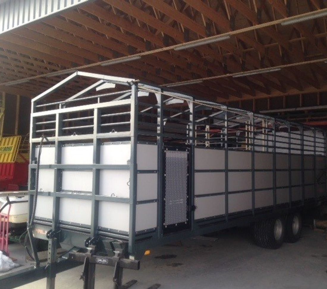 Ombygd rundballhenger. 12mm PP forsterket med glassfiber, lysegrå.